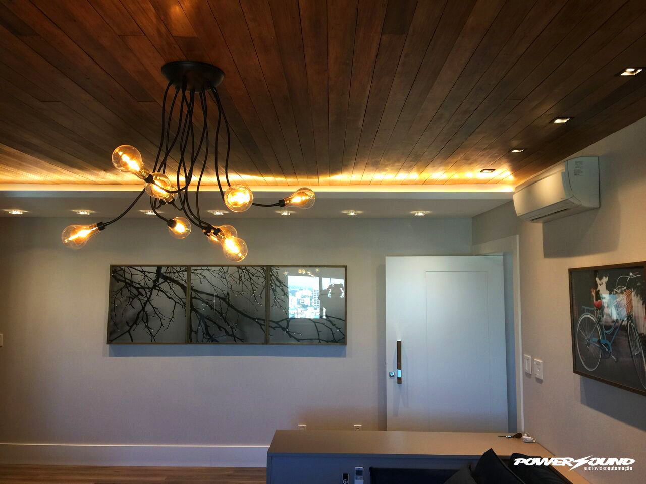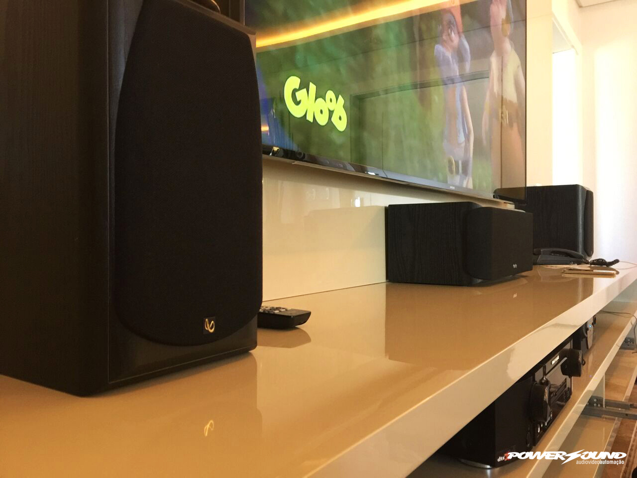– Televisor Smart 75″; – Caixas Infinity; – Subwoofer JBL; – Caixas Surround embutidas no gesso; – Receiver Marantz com zona 2.